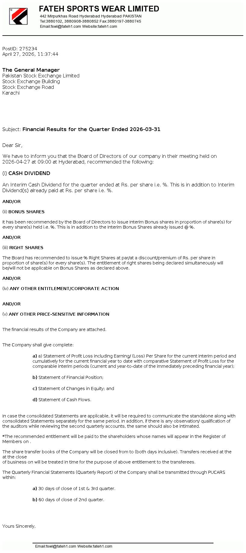 Board Meeting at 28-Apr-2026