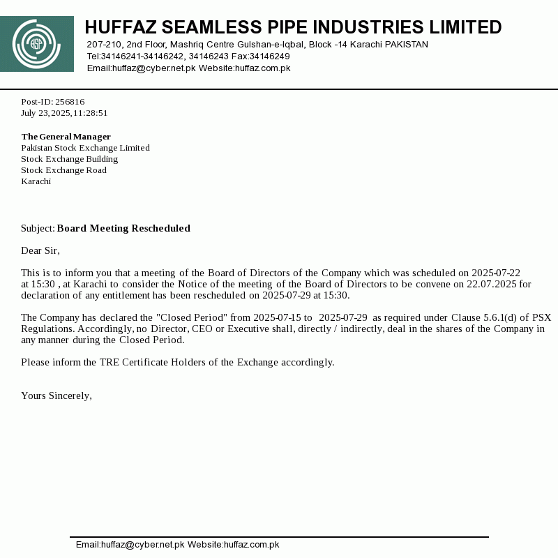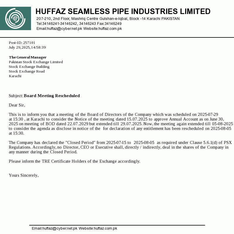Board Meeting Rescheduled at 06-Apr-2026