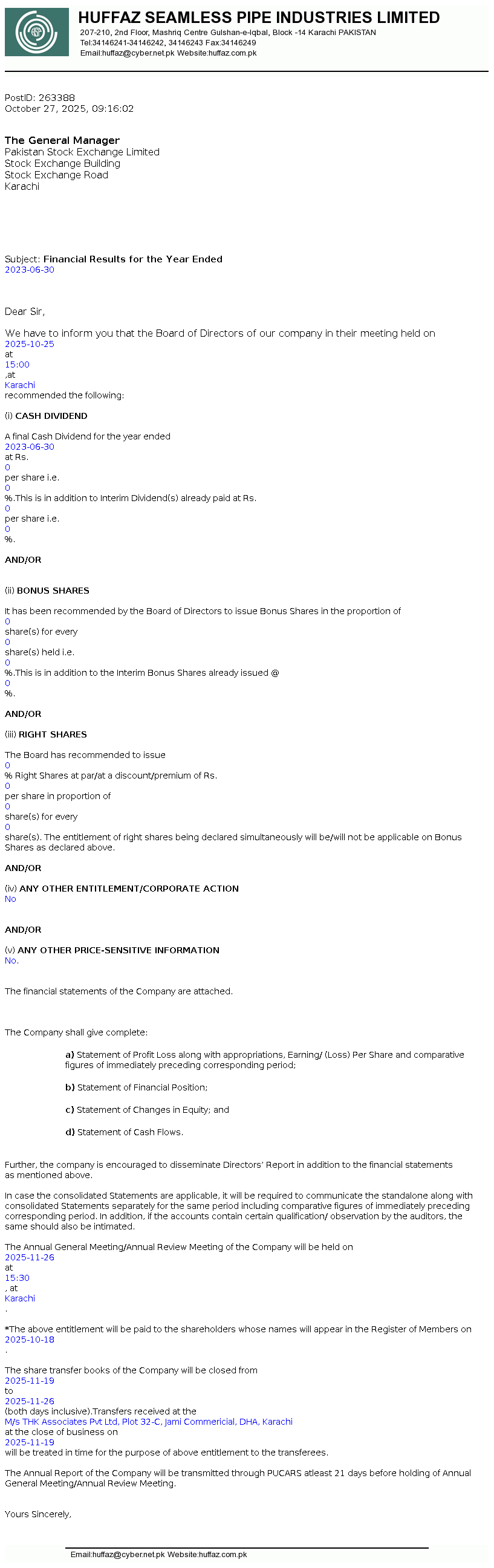 Latest Dividend