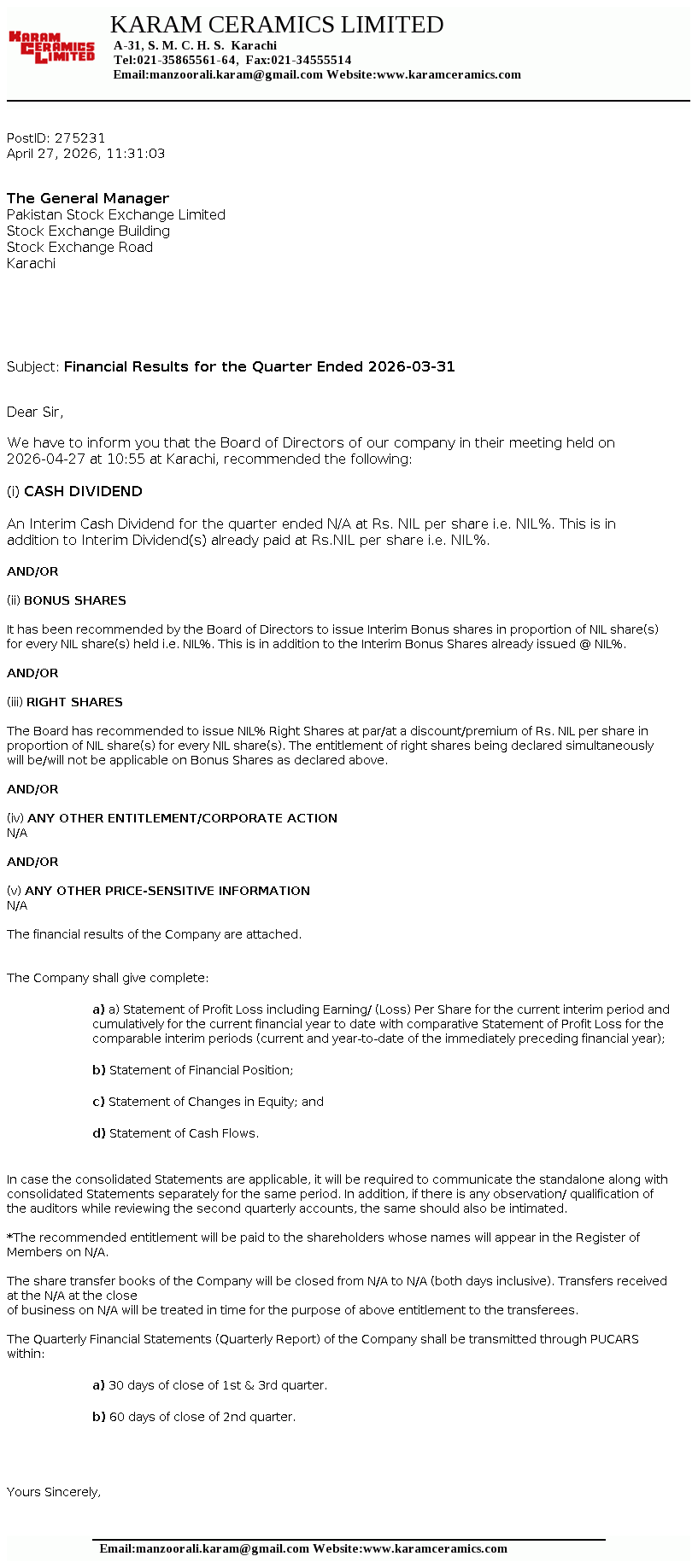 Latest Dividend