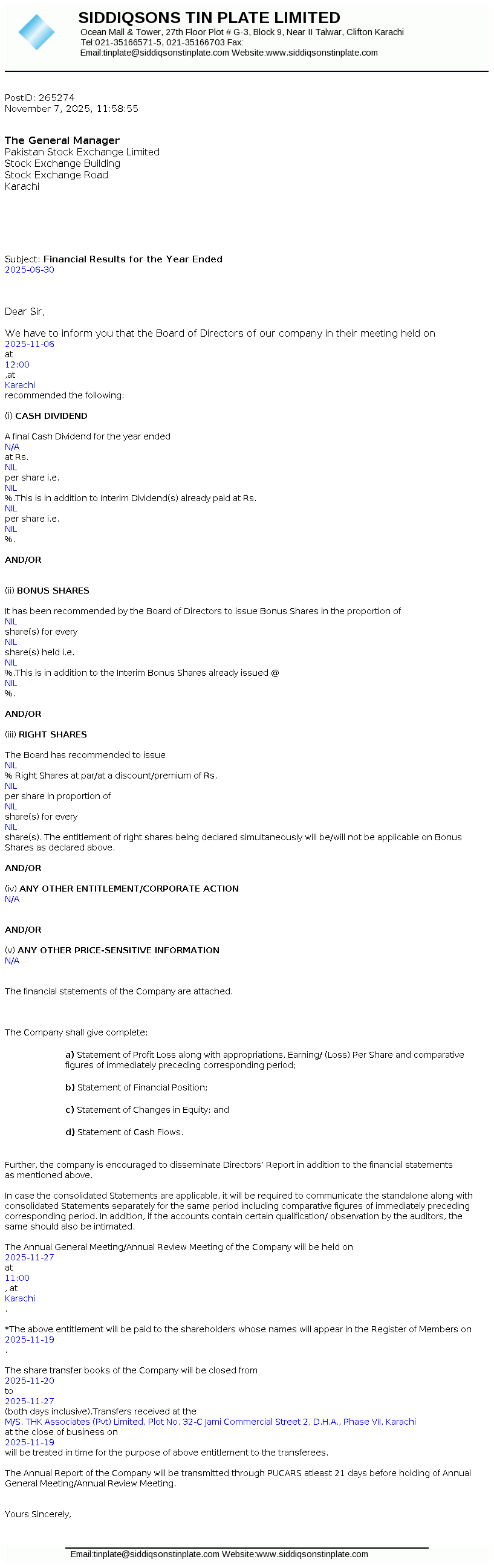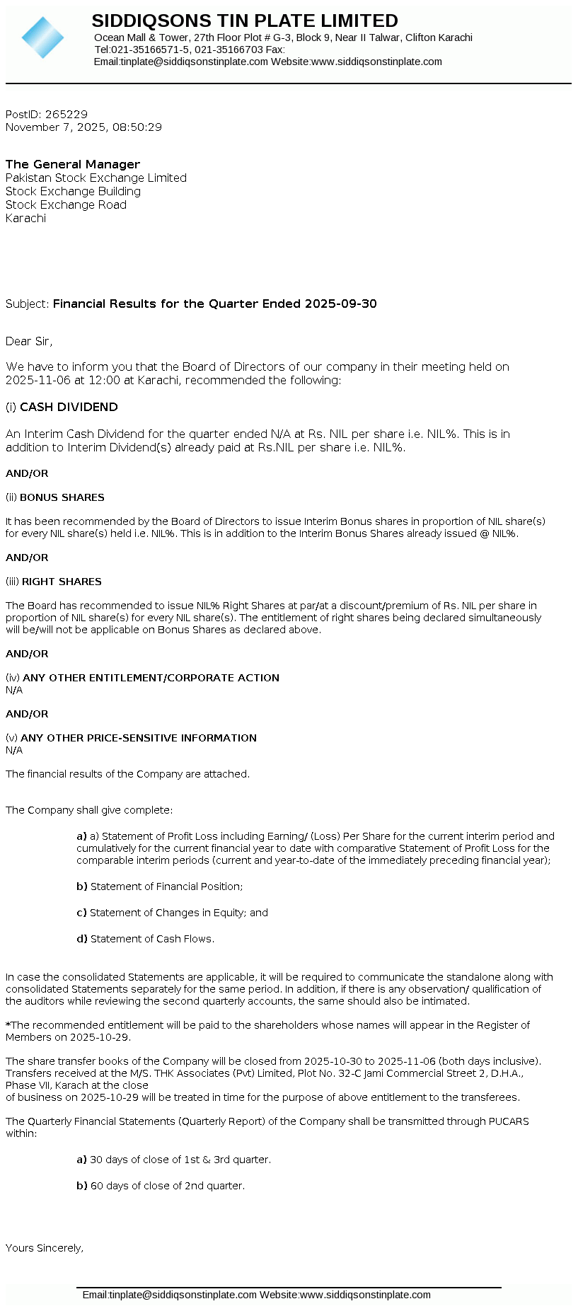 Latest Dividend